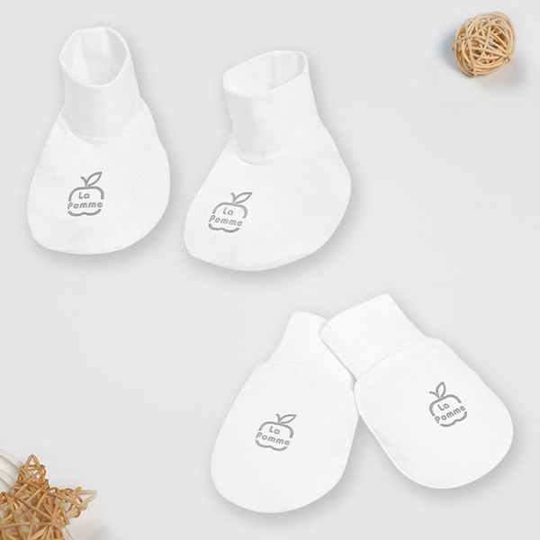 - Set bao tay chân La Pomme được sản xuất từ chất liệu kết hợp giữa 70% bamboo và 30% cotton giúp mang đến sự mềm mại, thoáng khí và khả năng kháng khuẩn tự nhiên, an toàn cho làn da của trẻ sơ sinh.