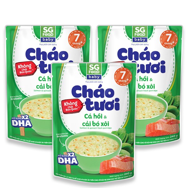 - Cháo tươi SG Food phù hợp trẻ từ 7 tháng và người lớn, thương hiệu SG Food, sản xuất tại Việt Nam.