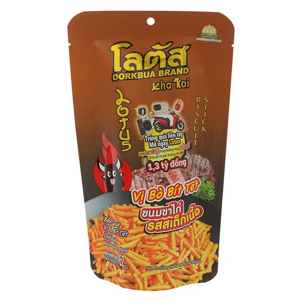 Bánh que Dorkbua vị thịt bò nướng BBQ gói 62g (từ 3 tuổi)