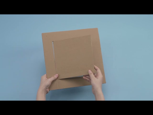 - Dùng dao rọc giấy cắt theo đường viền hình vuông vừa vẽ, nhẹ nhàng lấy hình vuông ra khỏi tấm bìa, giữ lại phần viền bìa xung quanh.