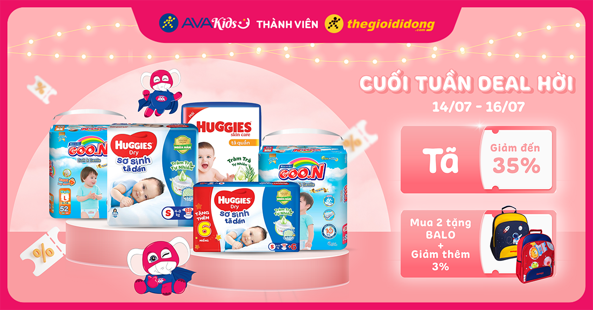 (14/07 - 16/07)Cuối tuần săn tã giá sốc, giảm đến 35%. Càng mua càng giảm kèm quà ngon! Chốt ngay!