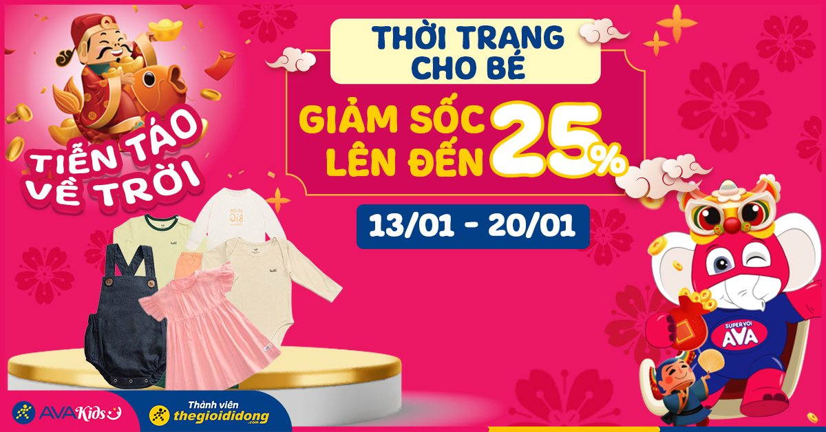 (13/01 - 20/01)Tiễn táo về trời - Thời trang cho bé giảm lên đến 25%. Mẹ nhẹ sắm sửa, bé vui đón Tết!