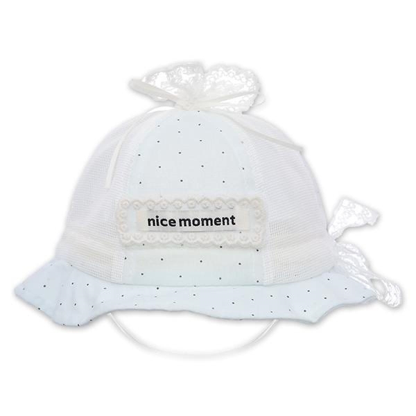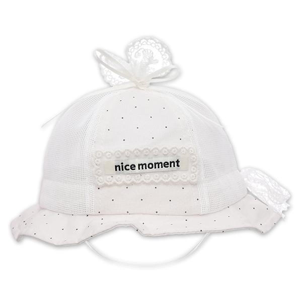 - Các họa tiết chấm bi nhỏ xinh phủ đều trên nền vải hồng nhạt, kết hợp cùng viền ren thêu tỉ mỉ và nơ ren nổi bật trên đỉnh, tạo nên vẻ ngoài thanh lịch, nữ tính, giúp bé gái có vẻ ngoài trông thật đáng yêu.