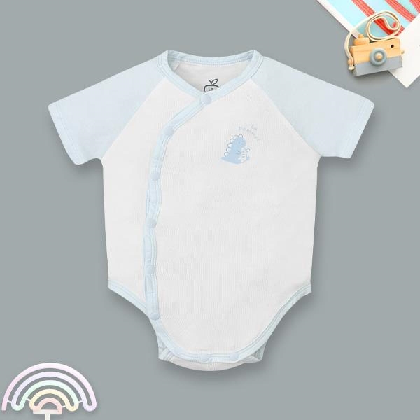 - Thiết kế bodysuit tay ngắn với hệ thống nút bấm được đính dọc từ cổ xuống đáy quần giúp ba mẹ thao tác thay đồ hoặc thay tã cho con một cách nhanh chóng và dễ dàng. Kiểu dáng này không chỉ mang lại sự thông thoáng cho đôi tay mà còn giúp giữ ấm vùng bụng và ngực của bé, tránh tình trạng áo bị xô lệch khi bé cử động mạnh, đảm bảo sức khỏe cho trẻ.