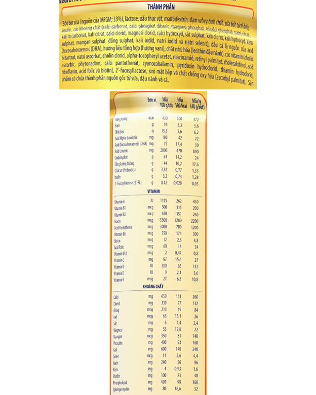- Chất xơ hòa tan dạng inulin giúp bé tiêu hóa khỏe và nâng cao khả năng hấp thu dưỡng chất. Sự kết hợp giữa chất xơ cùng 2'-FL HMO còn có vai trò quan trọng trong việc ức chế hoạt động của hại khuẩn đường ruột nhằm bảo vệ và cải thiện hệ tiêu hóa của trẻ, từ đó giúp tăng cường miễn dịch, sức đề kháng.