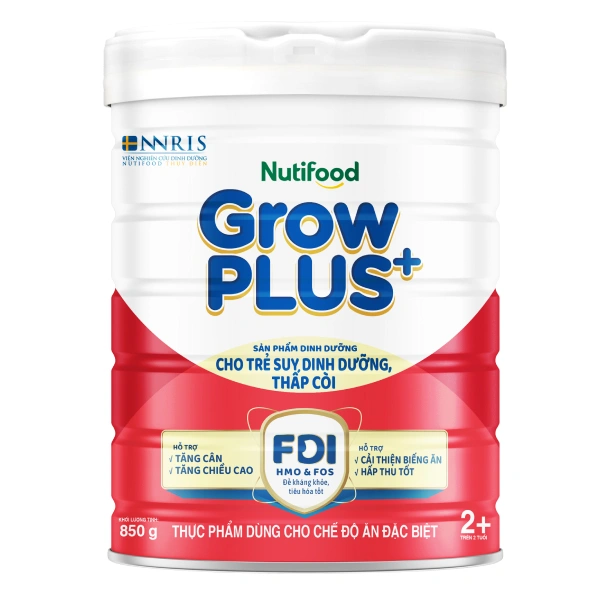 - Sữa bột Nutifood GrowPLUS+ với công thức FDI độc quyền từ NNRIS, kết hợp bộ đôi HMO và FOS giúp xây dựng cho bé nền tảng "đề kháng khỏe - tiêu hóa tốt", phát triển vững chắc trong tương lai.