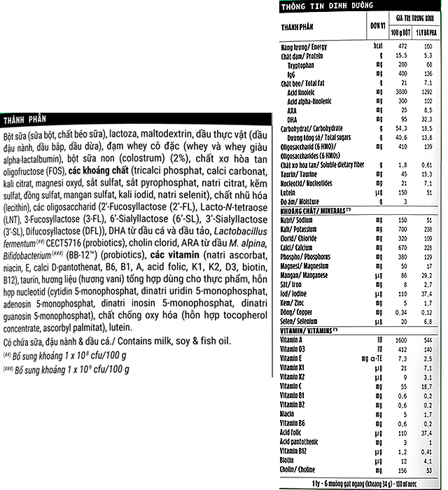 - Sữa bột với công thức bổ sung 6 HMO, probiotics BB-12 và lactobacillus fermentum (HMP) nhằm tăng cường kháng thể IgA tự nhiên, hạn chế sự bám dính của các vi khuẩn lên thành ruột, hỗ trợ hệ tiêu hóa và miễn dịch khỏe mạnh cho trẻ.