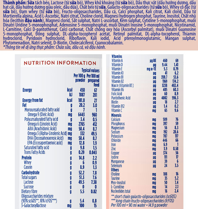 ALA (omega 3), DHA & ARA (omega 3 & 6) là những dưỡng chất thiết yếu giúp bé phát triển não bộ, hệ thần kinh và thị lực. Ngoài ra, các dưỡng chất kết hợp với vitamin C và D có trong sữa còn hỗ trợ nâng cao khả năng miễn dịch của bé.