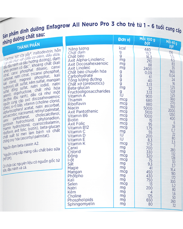 Sản phẩm tương tự: Enfagrow A+, Enfamil Enspire, Enfamil Neuropro Infant Formula