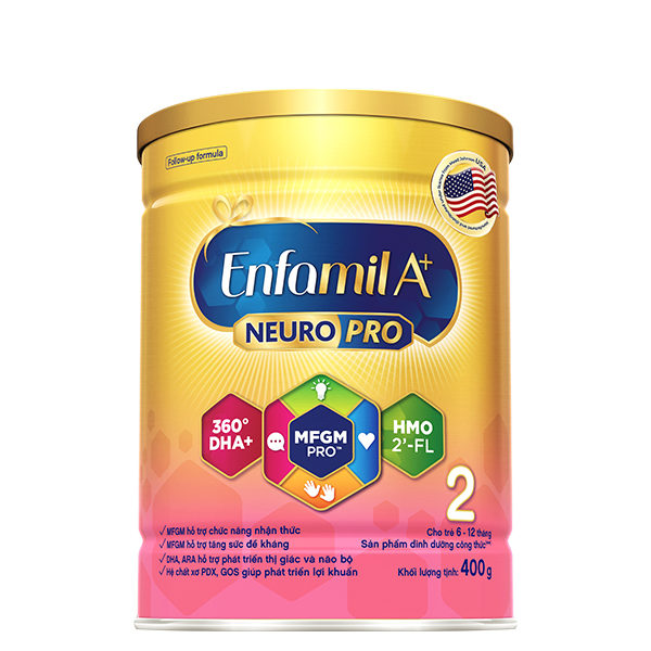 Sữa bột Enfamil A+ Neuropro số 2 là sản phẩm sữa được nhiều bà mẹ lựa chọn cho con yêu của mình. Với công thức đặc biệt chứa các dưỡng chất MFGM, DHA và ARA sản phẩm cung cấp nguồn dinh dưỡng cần thiết, giúp tăng cường sức khỏe và phát triển toàn diện chức năng não bộ và hệ thần kinh cho trẻ từ 6 đến 12 tháng tuổi.