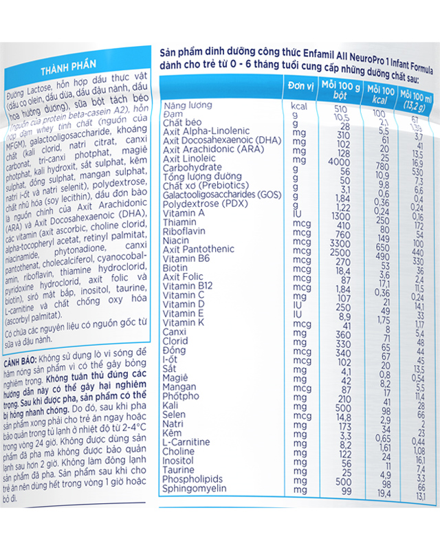 Sản phẩm tương tự: Enfagrow A+, Enfamil Enspire, Enfamil Neuropro Infant Formula