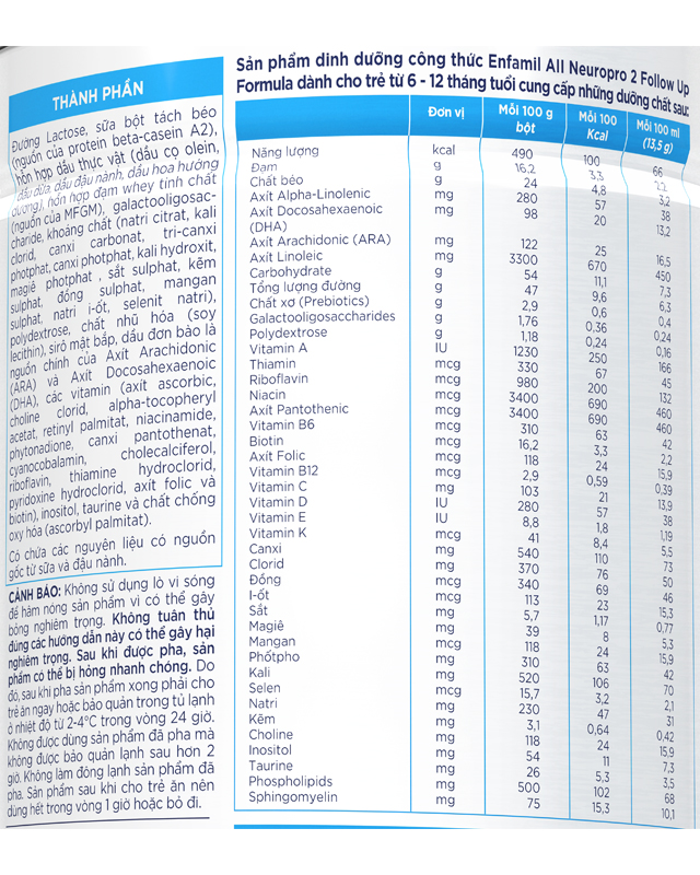 Sản phẩm tương tự: Enfagrow Premium Toddler, Enfamil Enspire, sữa Enfamil A2, Enfamil Neuropro