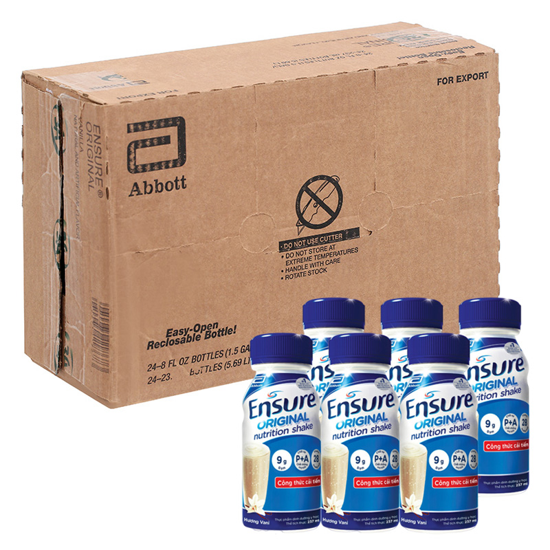 Thùng 24 chai sữa bột người lớn pha sẵn Ensure Original hương vani 237 ml