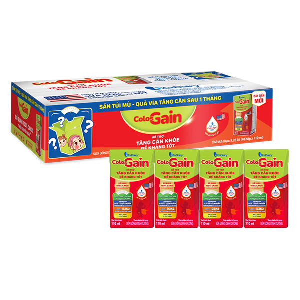 Lốc 4 hộp sữa non pha sẵn Colos Gain hương vani 110 ml (từ 1 tuổi) - Giao bao bì ngẫu nhiên