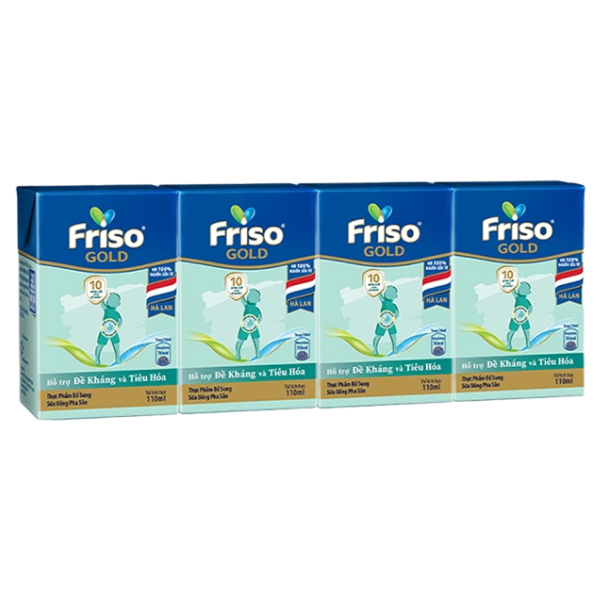 Lốc 4 hộp sữa pha sẵn Friso Gold hương vani 110 ml (từ 1 tuổi)