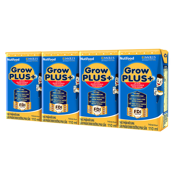 Lốc 4 hộp sữa pha sẵn Nutifood GrowPLUS+ xanh hương vani 110 ml cho trẻ biếng ăn (từ 2 tuổi)