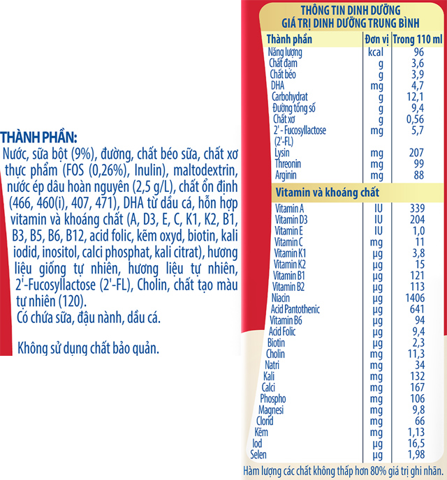 - Sữa chứa 2’-FL HMO, FOS, selen cùng các vitamin A, E, C giúp củng cố hàng rào bảo vệ cơ thể, tăng cường đề kháng giúp chống lại các vi khuẩn gây bệnh cho bé khoẻ mạnh hơn.