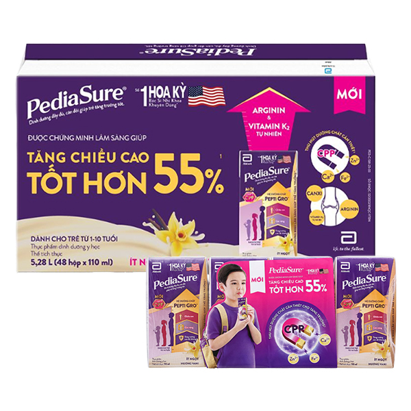 Sữa PediaSure pha sẵn còn bổ sung thêm arginin và vitamin K2 thúc đẩy sự tăng trưởng của xương, giúp xương dài hơn. PediaSure được chứng minh lâm sàng giúp bé tăng cân, chiều cao và cải thiện sức đề kháng chỉ sau 9 tuần.