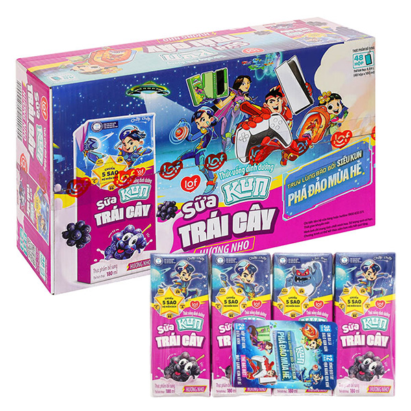 Lốc 4 hộp sữa trái cây LiF Kun hương nho 180 ml (từ 2 tuổi)