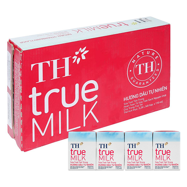 Lốc 4 hộp sữa tươi tiệt trùng TH true MILK có đường hương dâu 110 ml (từ 1 tuổi)