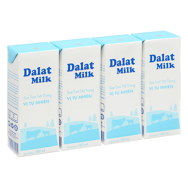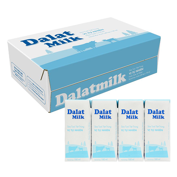 Thùng 48 hộp sữa tươi tiệt trùng Dalat Milk không đường 180 ml (từ 1 tuổi)