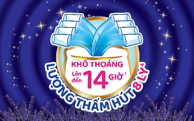 Lõi siêu thấm hút với công nghệ khóa chặt chất lỏng, có thể chứa tới 8 ly nước (1 ly = 70 ml), giúp bề mặt khô thoáng tới 14 giờ, chống thấm ngược hiệu quả. Nhờ đó, bé có thể ngủ liền mạch mà không bị đánh thức giữa đêm vì ẩm ướt.