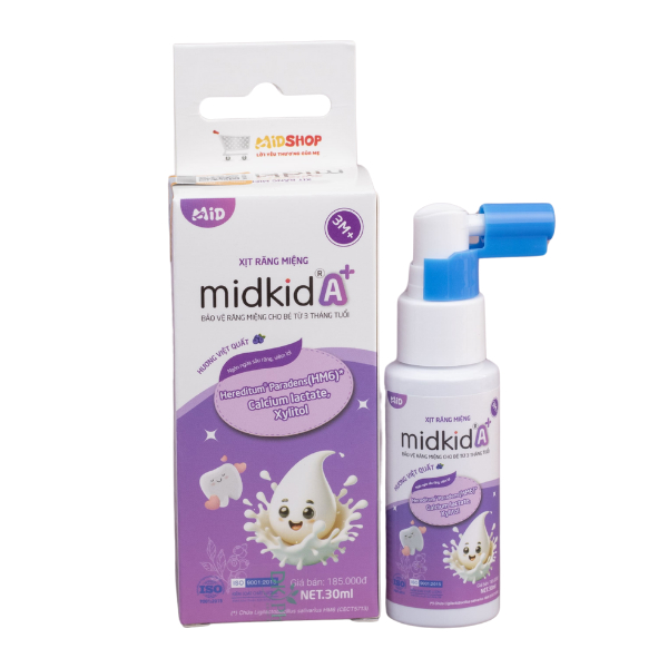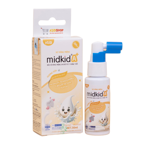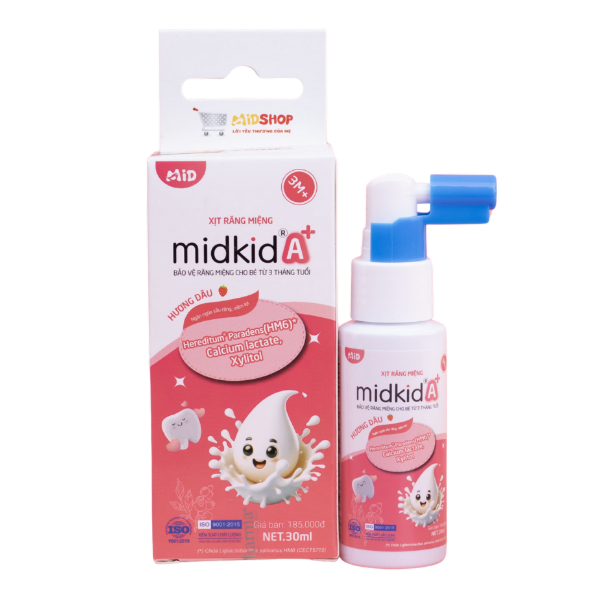 Midkid A+ chống sâu răng hương dâu, 30 ml dạng xịt (từ 3 tháng)